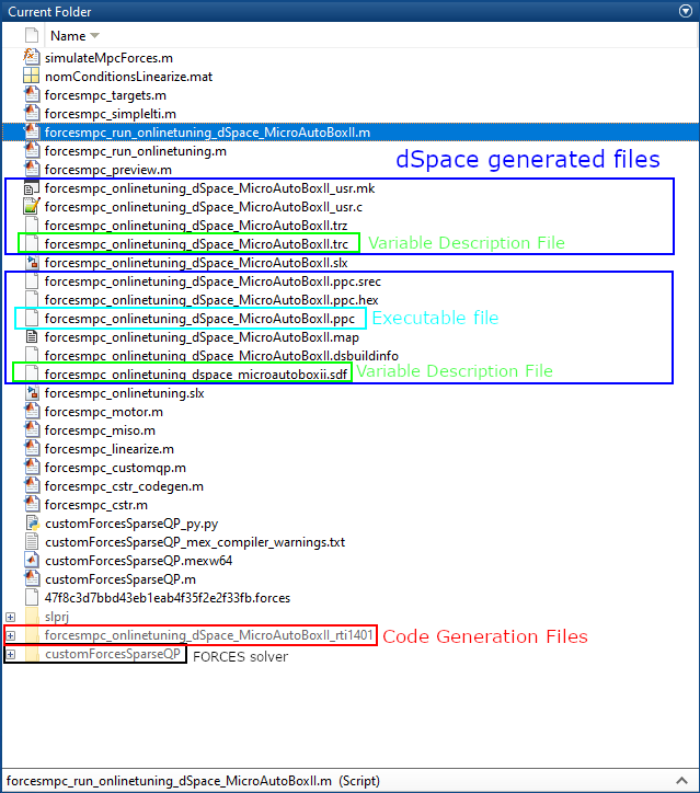 FORCESPRO currently does not support the dSPACE MicroAutoBox II platform. This example has remained as a guideline for deployment to other target platforms.