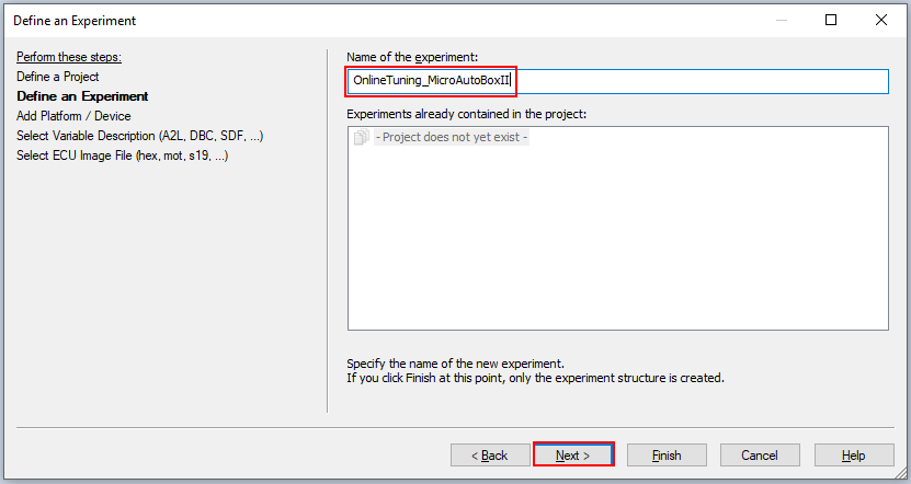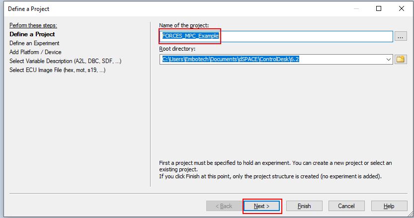 Figure 6.20 Select the executable to run the experiment¶