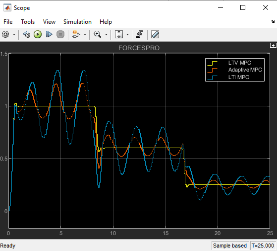 % Start simulation.mdl='forcesmpc_onlinetuning';open_system(mdl);% Open Simulink(R) Modelsim(mdl);% Start Simulation